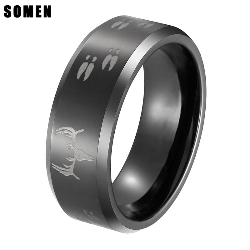 2017 8mm Men Ring Black Tungsten Carbide Ring Deer Head Hunting Wedding Engagement Band Polished Size 6-12